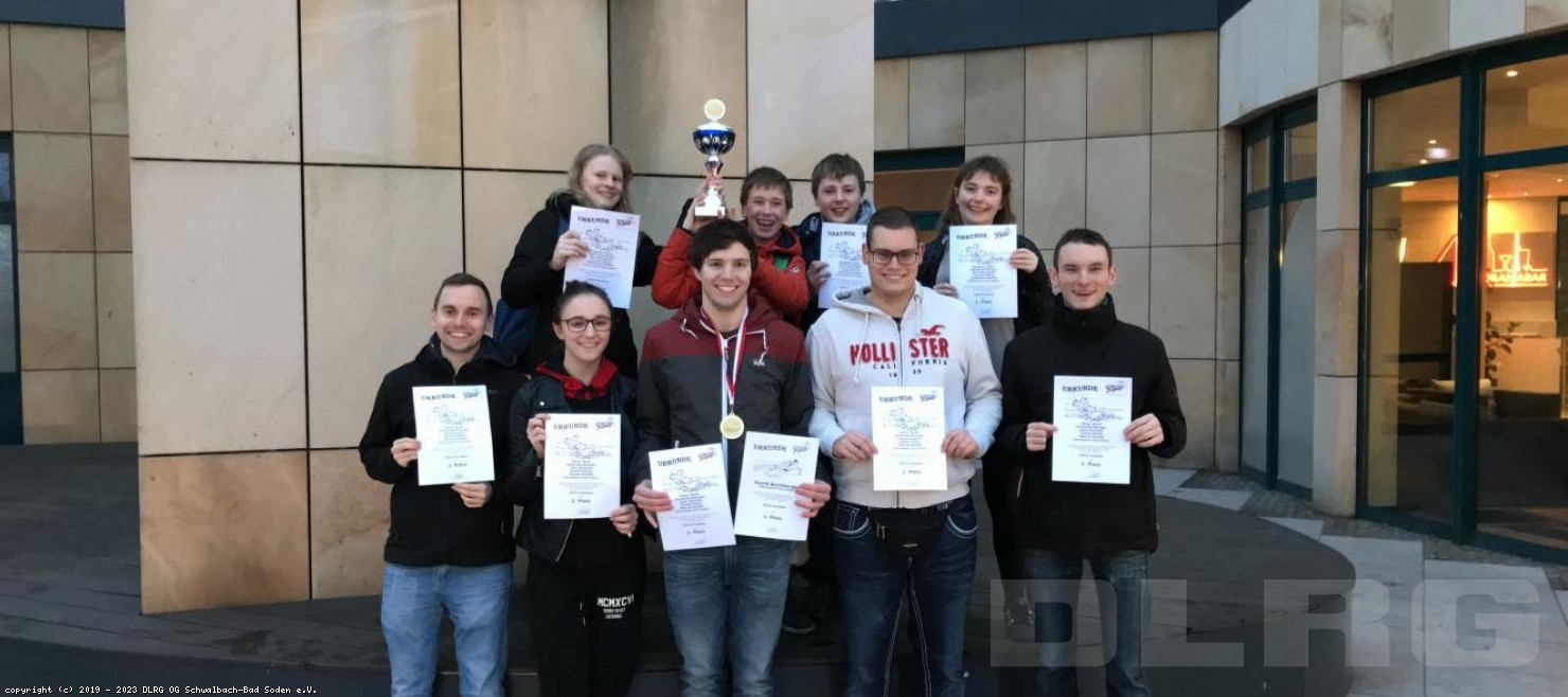 In der Altersklasse der 15/16-Jährigen belegte die aus Mädchen und Jungen gemischte Mannschaft aus Schwalbach-Bad Soden mit 1.406 Punkten den ersten Platz. Die Schwimmerinnen und Schwimmer (Morgane Adler, Mathis Kaufmann, Elias Marschall, Yvonne Müller und Sebastian Weßler) können damit an den DLRG-Hessenmeisterschaften teilnehmen, die am 26./27. Mai wieder in Hofheim stattfinden.